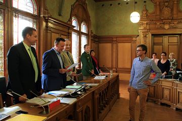 11. Mai 2016 – In der Stadtratssitzung vom 11. Mai 2016 wurde Philipp Steffen als Stadtrat vereidigt. Der 28-jährige Realschullehrer kandidierte 2014 erstmals für den Stadtrat und rückte nun für die verstorbene Brigitte Dittrich nach. Schon vor der Kandidatur engagierte er sich in der GRÜNEN Jugend und als Koordinator des Landesarbeitskreises Bildung. Philipp wird die GRÜNEN-Fraktion im Ausschuss für Schule, Bildung und Sport sowie im Ausschuss für Jugendhilfe und Jugendangelegenheiten vertreten. Er übernimmt die Pflegschaft für die Grund- und Mittelschule Soldnerstraße. Neben Jugend und Bildung sieht er weitere Schwerpunkte seiner politischen Arbeit in den Bereichen interkulturelles Zusammenleben und Demokratie.