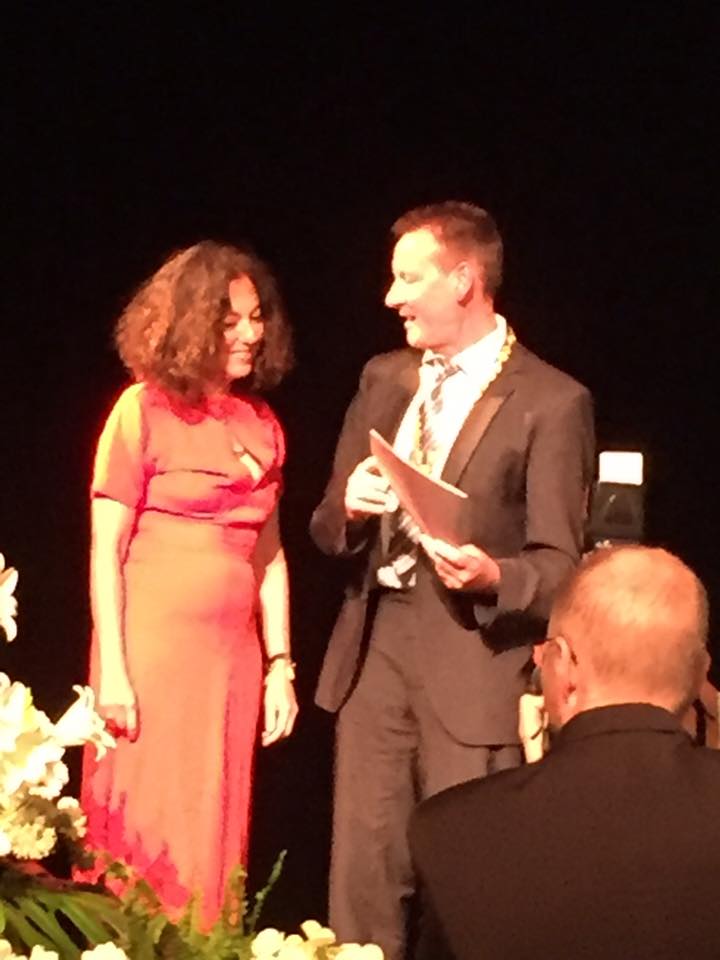 - Preisträgerin Gila Lustiger und OB Thomas Jung